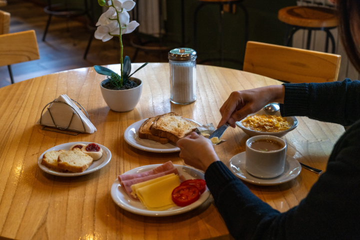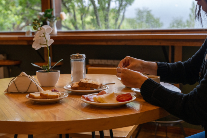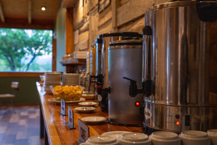 Desde el área del desayuno se puede apreciar la vegetación autóctona del hermoso valle del Río de las Vueltas, haciendo de este un espacio ideal para el descanso.