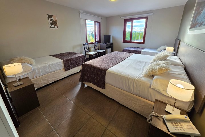 La hostería cuenta con 14 habitaciones distribuidas en dos plantas, siendo las opciones en dobles, triples o cuádruples.