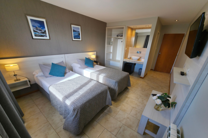 El edificio principal cuenta con 12 habitaciones dobles standard distribuidas en dos plantas. El detalle que nos caracteriza, es que todas las ventanas nuestras habitaciones tienen vista hacia el Lago Argentino y a la cordillera de los Andes.